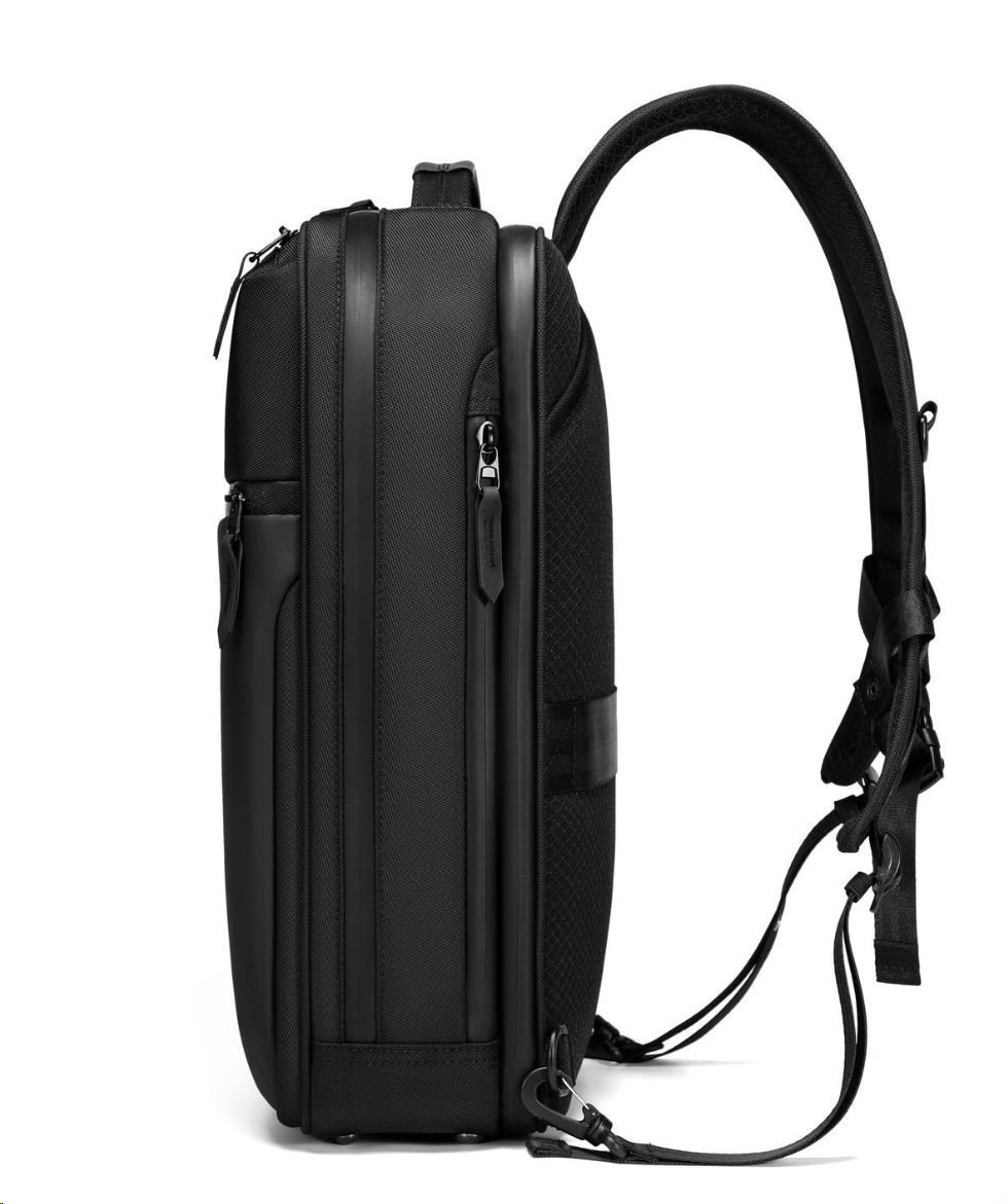 MYBALO ASTON Perfektní volba pro minimalisty s dobrým vkusem 6 ikon: - Nejtenčí batoh - Elegantní - Kapsa na notebook do 15,6" - Kapsa na tablet do 9" - Otevírání o 180 stupňů - USB a USB-C port - Drží tvar - Voděodolný - Skryté kapsy Elegantní a minimalistický Jedná se o velmi elegantní a minimalistický batoh. S tímto parťákem neuděláte chybu při běžném nošení do města, ani na důležité schůzce. Tenký batoh MYBALO Aston je batoh s vůbec nejmenší hloubkou z naší nabídky. Díky tomu působí elegantně a minimalisticky, ale i přesto se do něj vejdou všechny vaše nezbytnosti. Kvalitní voděodolný materiál, dlouhá životnost Kvalitní umělá kůže zajišťuje trvanlivost a odolnost batohu proti vodě a opotřebení. MYBALO Aston tak bude vaším společníkem opravdu dlouho. Drží tvar Batoh si zachovává svůj tvar také v případě, že jej budete mít úplně prázdný. Vestavěný USB a USB-C port Nabíjejte svá elektronická zařízení kdekoli a kdykoli díky vestavěnému USB a USB-C portu. Popruh k uchycení na kufr Cestujte pohodlně. Kdykoli chcete mít volná záda, jednoduše připevněte batoh na rukojeť svého kufru. Pohodlné polstrování Užijte si komfortní nošení díky kvalitnímu a prodyšnému polstrování ramenních popruhů a zádové části. Další praktické kapsy Zorganizujte si pohodlně a snadno své věci díky množství vychytaných kapes. Skryté kapsy V zádové části a na ramenním popruhu najdete skryté kapsy pro bezpečné uložení cenností. Vnitřní kapsy Vnitřní kapsy slouží pro snadnou organizaci všech vašich věcí. Přední kapsa Přední kapsa je určena pro věci, které chcete mít rychle a snadno po ruce. Parametry: - Rozměry: 46 x 30 x 9 cm - Objem: 11 l - Hmotnost: 1,19 kg - Kapsa na notebook: Ano (do vel. 15,6") - Kapsa na tablet: Ano (do vel. 9") - USB port: Ano - Voděodolnost: Ano - Hlavní materiál: Ekokůže + Polyester - Podšívka: Polyester - Barva: Černá