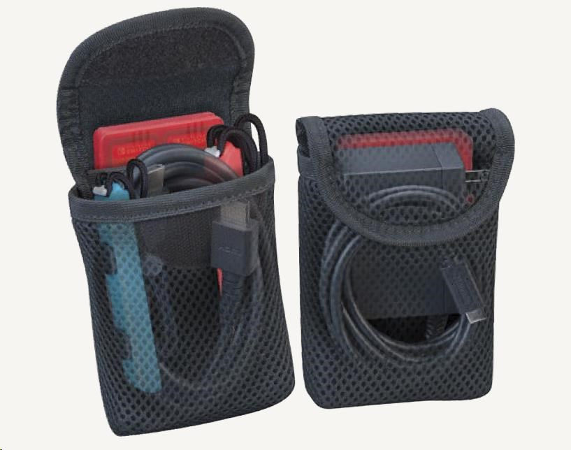 • Dve vyberateľné sieťované vrecká pojmú napájací adaptér s káblom, prepájací HDMI kábel, náramky na zápästie pre ovládače Joy-Con 2 a priložené plastové púzdra pre herné a microSD karty.