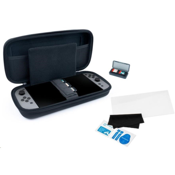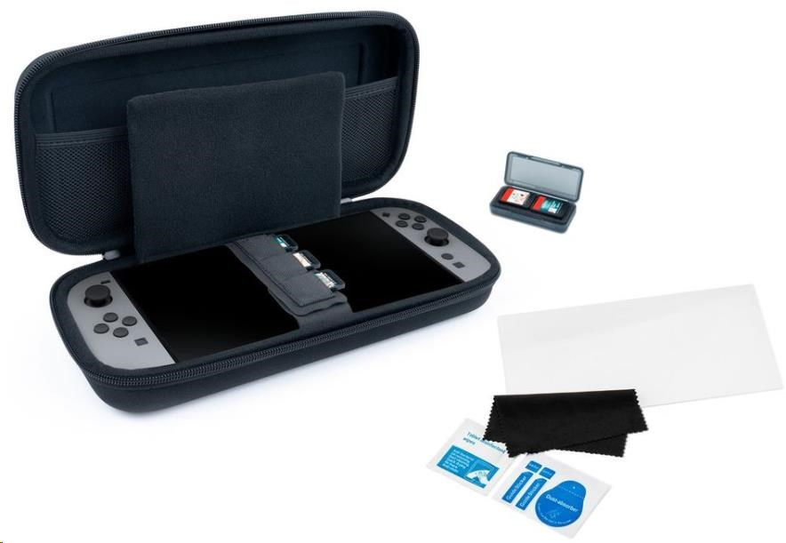 Táto súprava príslušenstva od spoločnosti Nacon určená pre hernú konzolu Nintendo Switch 2 obsahuje pevný prepravný obal, tvrdené ochranné sklo a praktické puzdro na uloženie ďalších herných kariet.