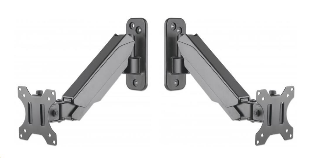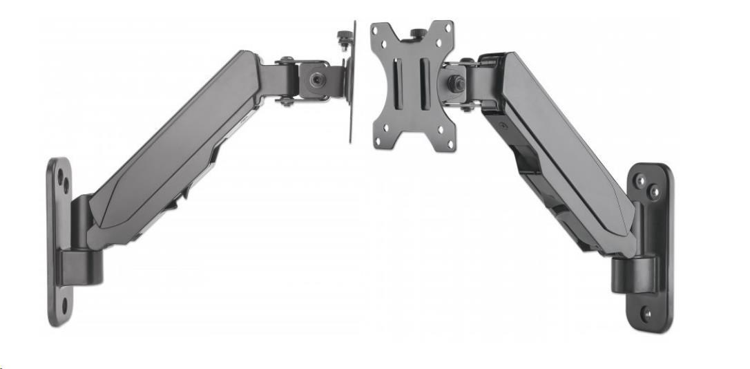 Univerzálny nástenný držiak na monitor s plynovou pružinou Manhattan ponúka rameno s jednou plynovou pružinou na bezpečné uchytenie jedného 17" až 32" televízora alebo monitora. Plynová pružina tohto držiaka podporuje ľahký pohyb monitora alebo televízora do pohodlnejšieho pozorovacieho uhla aj tým najľahším dotykom. Univerzálny nástenný držiak monitora s plynovou pružinou Manhattan, ktorý je určený na inštaláciu na stenu, aby ste získali späť toľko potrebný priestor na pracovnej ploche, poskytuje väčšiu flexibilitu, dosah a celkovú radosť z akejkoľvek úlohy.