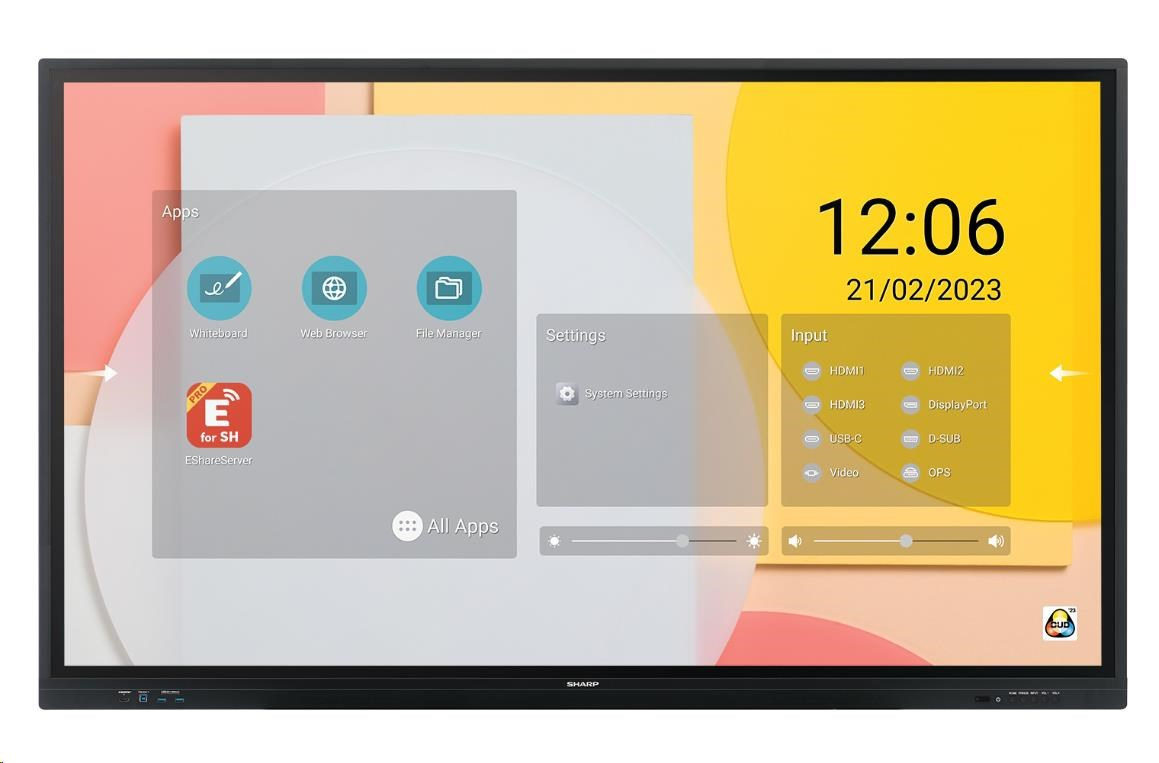 | Príslušenstvo | Mobilné stojany (PD02MHA-CB86; PD03MHA-CB86); Rozšírenie licencie softvéru pera PN-SU01; Soundbar (PN-ZCMS1); Upevnenie na stenu (SF680P); USB-C kábel (USB-C 5M) |
