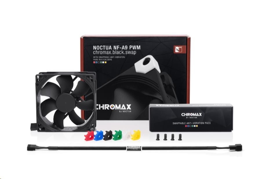 Rad NF-A9 sa zaslúžila o poprednú voľbu pri výbere 92 mm ventilátorov množstvom ocenení a odporúčaní od technických časopisov a stránok po celom svete. NF-A9 PWM chromax.black.swap kombinuje tichý chod tejto rady a elegantný čiernočierny dizajn radu chromax.black. Balenie obsahuje tiež sadu protivibračných podložiek pre tých, ktorí radi svoj stroj farebne zladia. Kvalitu chodu a spokojnosť tiež zaručí SSO2 ložisko, viac ako 150000 hodín MTTF a 6 rokov záruky u výrobcu.