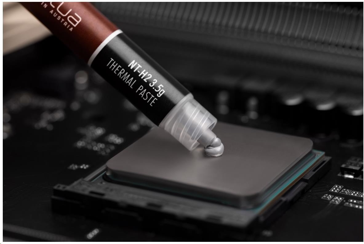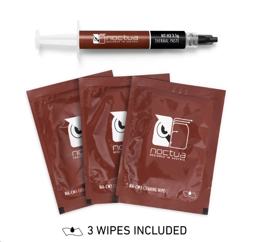 NT-H2 je ďalej vylepšená druhá generácia oceneného hybridného tepelného vodivého materiálu Noctua. Kombináciou overených vlastností ikonickej pasty NT-H1, vynikajúcej ľahkosti použitia a legendárnej dlhodobej stability s novým, jemne dolaďovaným zložením mikročastíc pre ešte lepší tepelný výkon je NT-H2 pasta pre nadšencov s najvyššími nárokmi. Či už ide o vzduchové alebo vodné chladenie, aplikácie na CPU alebo GPU, pretaktovanie alebo tiché systémy: NT-H2 bude dôsledne poskytovať vynikajúce výsledky a vďaka priloženým čistiacim obrúskom sa rovnako ľahko odstraňuje ako nanáša.