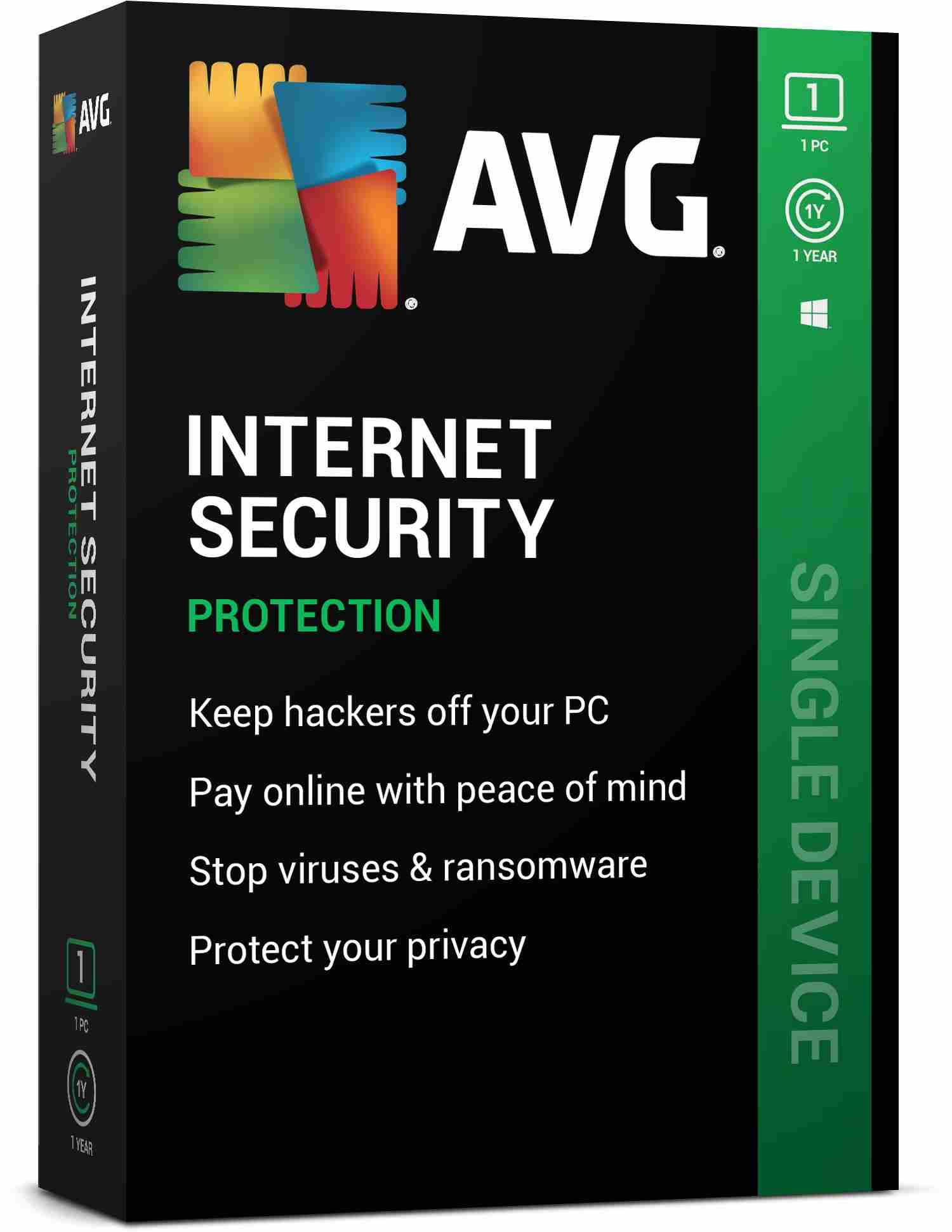 AVG Internet Security zablokuje vírusy a malware, zabezpečí e-maily, ochráni vaše súkromné súbory, heslá a webovú kameru pred hackermi a umožní vám nakupovať online a používať online bankovníctvo bez obáv.