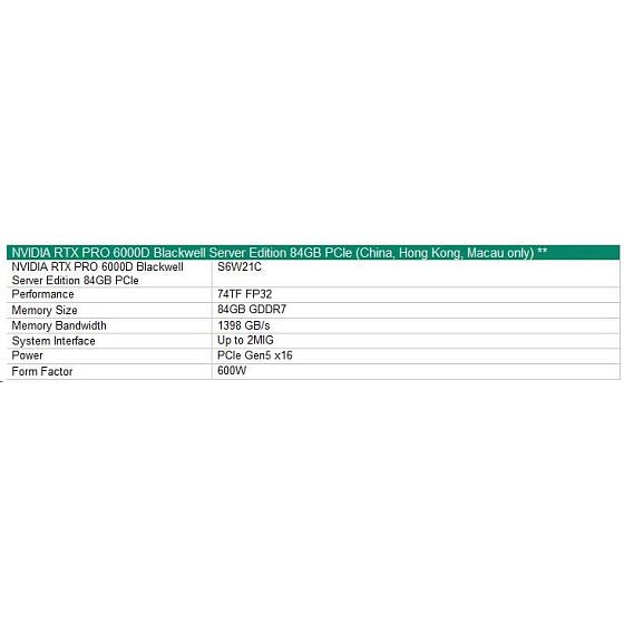NVIDIA RTX PRO 6000D 84GB PCIe Accelerator for HPE
