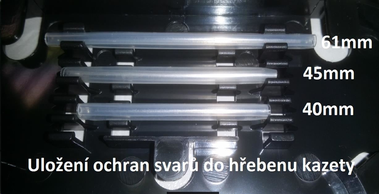 Samostmievacia zmršťovacia zmršťovacia fólia s dĺžkou 45 mm, určená na ochranu zvaru po zváraní. Vystužené oceľovým drôtom 1mm, ktorý zabraňuje ohýbaniu. Vnútorný priemer pred utesnením 1,2 mm. Okružná. Vonkajší rozmer po utesnení 2,4 mm. Teplota utesnenia musí byť najmenej 110 °C.