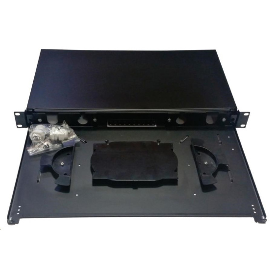 Optická vana výsuvná 1U, modulární bez čela s kazetou na 24 svarů, černá