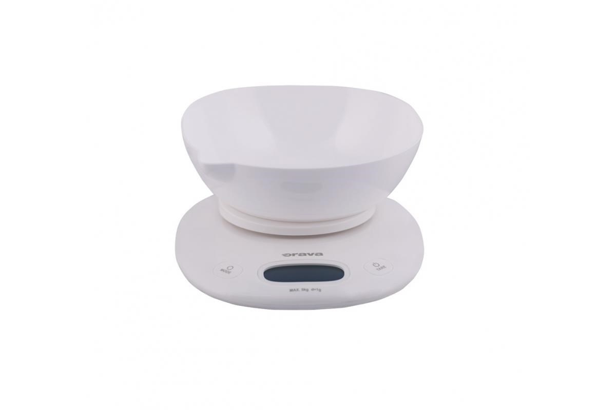ORAVA EV-14 digitální kuchyňská váha s miskou, LCD displej, funkce TARE, přesnost 1 g