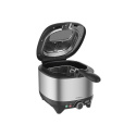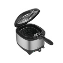 Smažené dobroty s Oravou Mladí i staří milují smažená jídla - nemohou se nabažit hranolek, smažených ryb, řízků nebo fašírky. Ani exotické pokrmy, jako jsou falafelové kuličky nebo asijské pochoutky v těstíčku tempura, si u nás již našly své věrné příznivce. Jakékoli smažené jídlo je jemné, křupavé, lákavé na zakousnutí. A že by nad nimi odborníci na výživu lomili rukama? Pokud máte k dispozici šikovný přístroj, který vám se smažením pomůže, a místo slunečnicového oleje použijete kokosový, který se nepřipaluje ani neškvaří, budou i zastánci zdravé výživy hned spokojenější. Fritéza Orava FR-111 je pro domácí smažení jako stvořená. Díky svému čtvercovému půdorysu nezabere na pracovní desce mnoho místa. Může se pochlubit příkonem 1 600 W, otočným ovládáním teploty a také praktickým mechanismem pro sklopení rukojeti fritovacího koše. Drátěný fritovací koš, horní kryt a fritovací nádobu s maximálním objemem 2,5 litru na olej a nepřilnavým, dvojitým povrchem lze po použití snadno vyjmout a důkladně umýt, aby se ve fritéze nehromadily připálené zbytky oleje. Horní kryt spotřebiče zabraňuje vystřikování oleje při smažení, ale je vybaven praktickým průzorem, abyste měli smažení neustále pod kontrolou. Velký koš a objem až 2,5 l Fritovací hrnec má objem až 2,5 litru a drátěný fritovací koš je dostatečně velký. Můžete tak najednou usmažit opravdu velkorysé porce, které nasytí celou rodinu. Do fritovacího koše se snadno vejde velký řízek, pořádná porce rybího filé nebo hromada pečených hranolků. Už žádné dlouhé čekání, než se všichni u stolu nasytí smaženého jídla. Tepelně izolovaný povrch Bezpečnost je na prvním místě. Fritovací hrnec má tepelně izolovaný povrch včetně rukojeti pro upevnění fritovacího koše, takže vám nehrozí, že se při smažení spálíte. Mezi důležité bezpečnostní prvky patří červená kontrolka, která signalizuje, že je spotřebič zapojen, a zelená kontrolka, která signalizuje, že se zvyšuje teplota spotřebiče a fritéza se zahřívá. Riziko prskání oleje je eliminováno zavíracím horním krytem spotřebiče.. Velký průzor pro smažení pod kontrolou Nemusíte otevírat horní část fritézy a riskovat, že vás zasáhne olej prskající všemi směry, abyste měli přehled o stavu smažených dobrot. Na otevíracím víku spotřebiče je velké průhledné plastové okno, přes které dobře vidíte a máte smažení pod kontrolou. Díky tomu můžete smažené potraviny vyjmout z hrnce dříve, než se stihnou připálit..