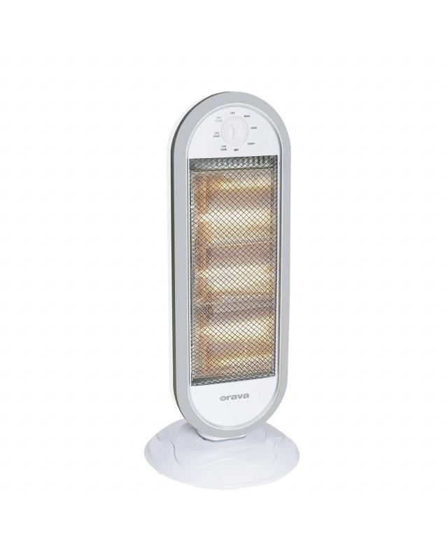 Halogenový ohrívač se 3 topnými telesy. Vysoká účinnost ohrevu bez vírení vzduchu. 3 úrovne nastavení topného výkonu: 400 W, 800 W a 1 200 W Funkce oscilace. Praktická rukojeť pro prenos ohrívače. Bezpečnostní pojistka vypnutí pri prevrácení ohrívače. Napájení: 220 - 240V~ 50 - 60Hz, 1 200 W