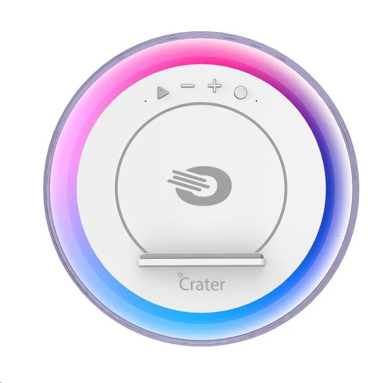 Crater-9 využijete tiež ako prenosný reproduktor, ktorý vďaka Bluetooth ľahko spárujete s mobilom, tabletom či počítačom, kde máte uložené svoje obľúbené hudobné kúsky. Či z neho znejú tanečné skladby, hudba na jogové cviky či večerné ukolébavky, Crater-9 vás milo prekvapí čistým a jasným zvukom s dynamickými bassmi o výkone 5 W (RMS). Ráno vás zvuk budíka zo smartphonu spoľahlivo preberie z toho najťažšieho spánku. Počas dňa reproduktor využijete aj pri video či konferenčných hovoroch.