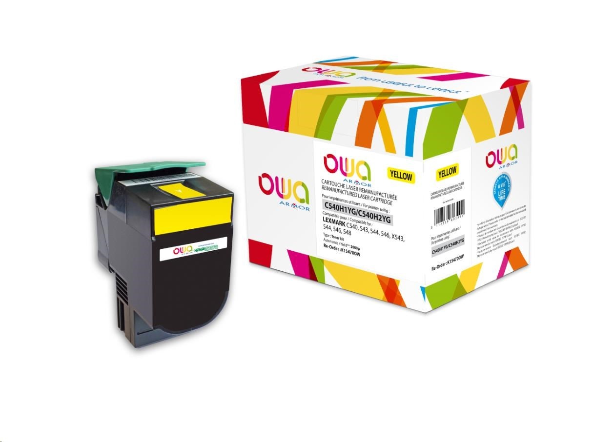OWA Armor toner pre LEXMARK C540, 543, 544, 546, X543, X544, X546, X548, 2000 strán, C540H1YG, žltá/žltá