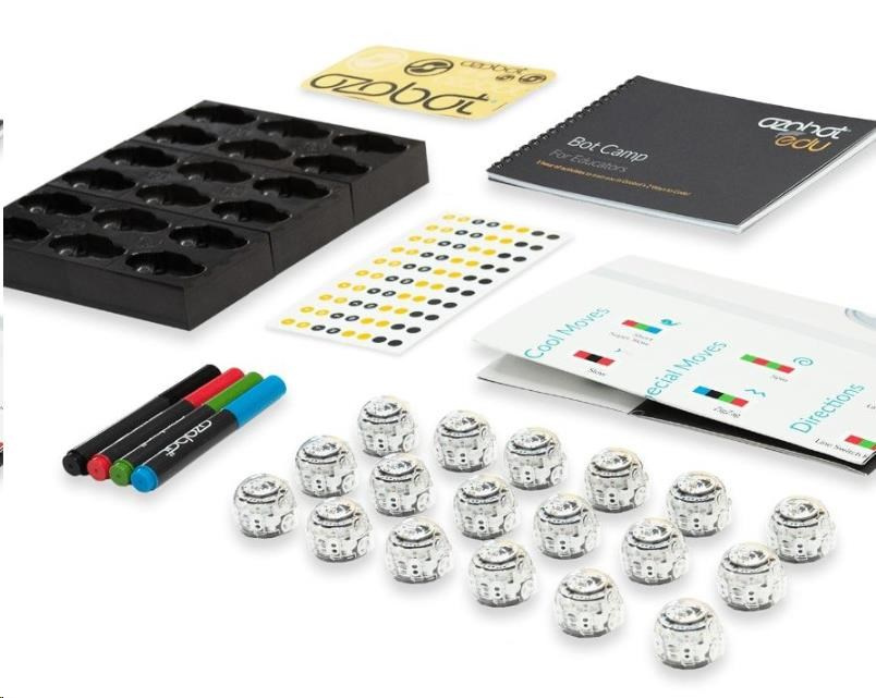 Sada pre školy a záujmové krúžky obsahuje 18 Ozobotov EVO a je vybavená všetkým, čo potrebujú veľké tímy. Novinkou je nabíjacia matica, ktorá sa postará aj o automatickú aktualizáciu softvéru.