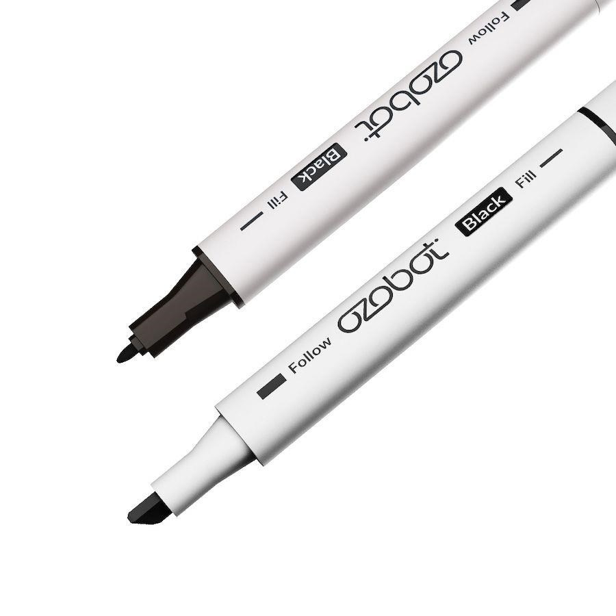 Ste už majstri v programovaní na papieri? Potom si zásobte fixkami, ktorými ľahko nakreslíte dráhy pre svojho Ozobota. Balenie obsahuje 5 farebných netoxických fixiek s oboustrannými hrotmi. Ich šírka a vydatnosť je presne prispôsobená senzorom oboch modelov Evo / Bit+. Väčší dlátový hrot pri správnom držaní vytvorí pre Ozobota ľahko čitateľnú stopu širokú 5 mm, ktorú pri programovaní môže nasledovať bez zaškobrtnutia. Na čierne línie je možné použiť nálepky s farebnými ozokódmi, alebo kódy dokresliť za čiernu čiara. Robotik pre ich prečítanie neomylné vykoná váš zadaný príkaz. Môžete ho napríklad roztancovať, nechať zaradiť turbo rýchlosť alebo rozbehnúť dozadu! Tenký hrot na druhej strane fixky zvládne aj tenké čiary a je ideálny na vypĺňanie informácií či písanie odpovedí na záludné otázky.