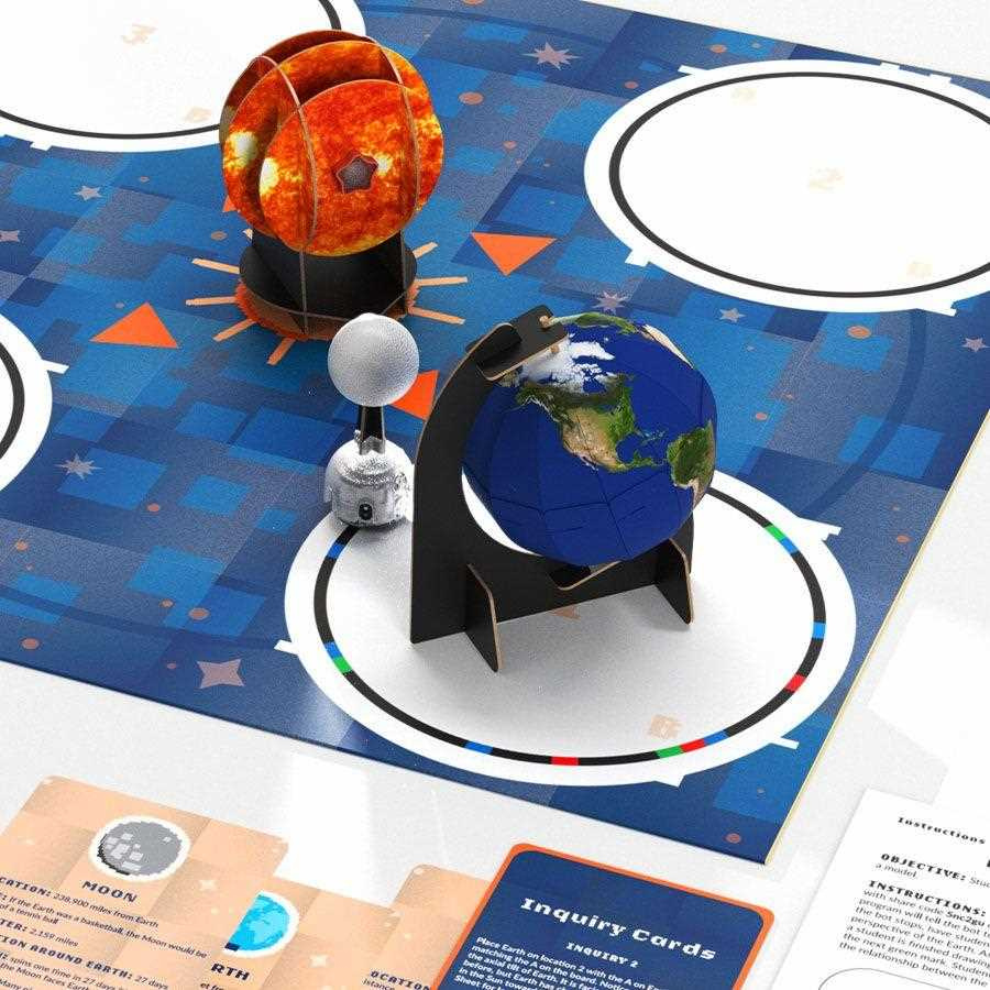 Spoločne zostavíme makety planét a umiestnime ich na hraciu plochu. S pomocou robota Ozobot môžu dokonca uviesť Mesiac do pohybu. Následným pozorovaním modelu získajú deti odpovede v priložených pracovných zošitoch. A ak si nebudú vedieť poradiť, budú mať po ruke kartičky, na ktorých nájdu všetky dôležité informácie. Zábavnou formou si tak malí študenti upevnia získané vedomosti, ale aj rozvíjajú kritické myslenie.
