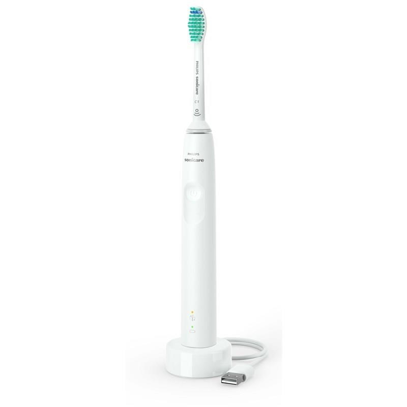 Vyskúšajte šetrnú starostlivosť overenej, efektívnej a komfortnej sonickej technológie! Klinicky je dokázané, že v porovnaní s tradičným manuálnym čistením zubov dokáže Philips Sonicare 3100 odstrániť až 3× viac zubného plaku. Je tiež vybavený citlivým tlakovým senzorom, ktorý vás jemne upozorní pulzáciou v okamihu, keď na zuby a ďasná tlačíte príliš silno. Príliš veľký tlak totiž vie spôsobiť celý rad zdravotných problémov a nie je vôbec jednoduché ho odhaliť. Kartáčok tak prispieva k lepšiemu stavu ďasien a celkovému zdraviu vašej ústnej dutiny. Prístroj za vás hlási aj optimálnu dobu čistenia zubov a to, či každú časť úst venujete rovnakú starostlivosť. Ak je pre vás čistenie zubov sonickou technológiou nové, oceníte režim Easy-Start, ktorý postupne zvyšuje intenzitu čistenia, aby ste si lepšie zvykli. Technológia BrushSync monitoruje stav opotrebovania hlavice kartáčka a dá vám signál, keď je potrebné ju vymeniť za novú. Kartáčok sa nabíja cez USB kábel.