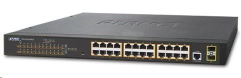 Popis Planet GS-4210-24P2S PoE+ switch 24x 10/100/1000Base-T, 802.3at do 300W, VLAN, SNMP/WEB