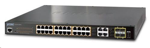 Popis Planet GS-4210-24P4C PoE+ switch 28x 10/100/1000Base-T, 802.3at do 220W, VLAN, SNMP/WEB