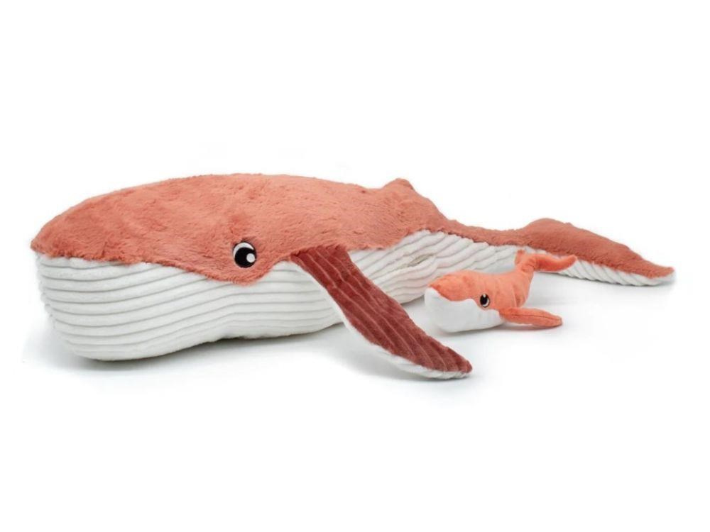 Veľký plyšák 2v1, veľrybia mama s miminkom, je originálnou plyšovou hračkou, ktorá poteší dievčatká aj chlapcov. Roztomilý a úžasne mäkučký plyšák je vhodný pre deti už od narodenia, ale určite si ho zamilujú aj väčšie deti. S veľkým plyšákom môžu deti spať, hrať sa s ním, maznať sa a použiť ho ako neobyčajne príjemný a mäkký vankúš. Plyšovú veľrybiu mamu s miminkom ponúkame vo viacerých farebných variantoch.