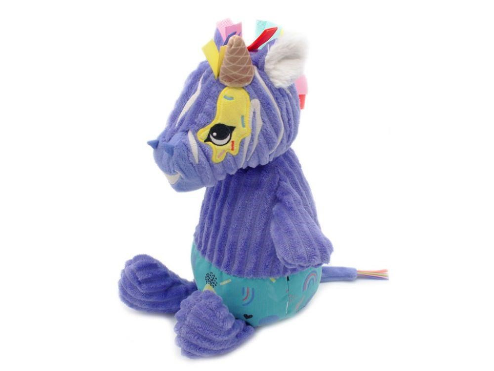 Roztomilý plyšák v podobe zebry, v krásnej fialovej farbe, je originálnym darčekom ku každej príležitosti. Úžasne hebká plyšová zvieratko ušité z mäk *manšestru*, ozdobené farebnými stuhami, je ideálnym spoločníkom do postieľky alebo kolísky, do kočíka aj na cesty. Plyšovou zebru v darčekovej krabičke a pokladničke môžete obdržať miminco aj väčšiu slečnu.