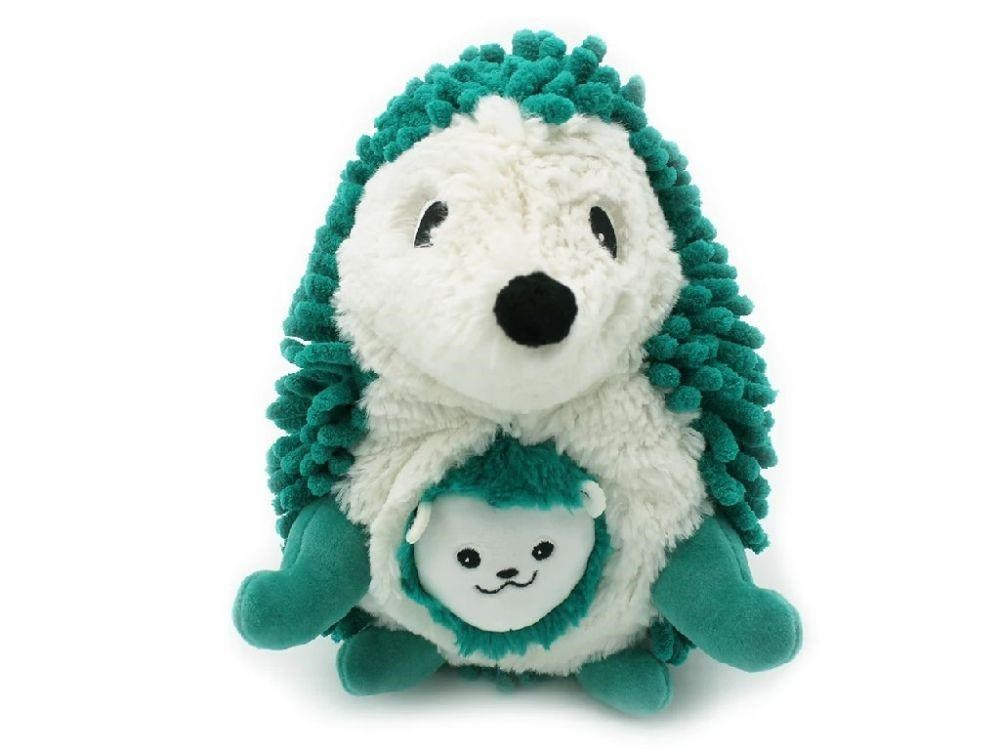 Mäkká plyšová hračka 2v1 v podobe roztomilého ježka s kapsičkou na brušku, v ktorej sa ukrýva jeho miminko, je krásnou hračkou pre chlapcov aj dievčatá pri akejkoľvek príležitosti. Mäkký plyšák v rôznych farebných prevedeniach sa stane milým kamarátom na spanie v postieľke aj na cesty. Plyšové zvieratko z príjemného manšestru je vhodné pre deti už od narodenia.