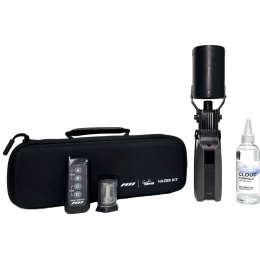 Okrem zariadenia SmokeGENIE obsahuje sada Hazer Kit bezdrôtový diaľkový ovládač, vymeniteľnú dymovú komoru a 12" silikónovú predĺžovaciu rúru. Súčasťou balenia je kvapalina Cloud Formula (60 ml), ktorá vám umožní ihneď začať fúkať dym. Súčasťou balenia sú dve lítium-ionové batérie 18650 a batéria 23A na napájanie zariadenia SmokeGENIE a diaľkového ovládača.
