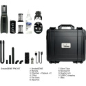 Okrem zariadenia SmokeGENIE obsahuje profesionálna sada bezdrôtový diaľkový ovládač, dve vymeniteľné dymové komory, adaptér pre filmový mľžny ventilátor, štyri presné trysky na tvarovanie dymu, trysku pre tekutý dym a 12" silikonovú predlžovaciu trubicu. Súčasťou balenia je kvapalina Cloud Formula, s ktorou môžete ihneď začať vytvárať dym. Súčasťou balenia sú tri li-ion batérie 18650 a 23A batérie na napájanie zariadenia SmokeGENIE a diaľkového ovládania. Vďaka priloženému ochrannému pevnosťou puzdru budete mať zariadenie SmokeGENIE a príslušenstvo pri cestovaní v bezpečí.