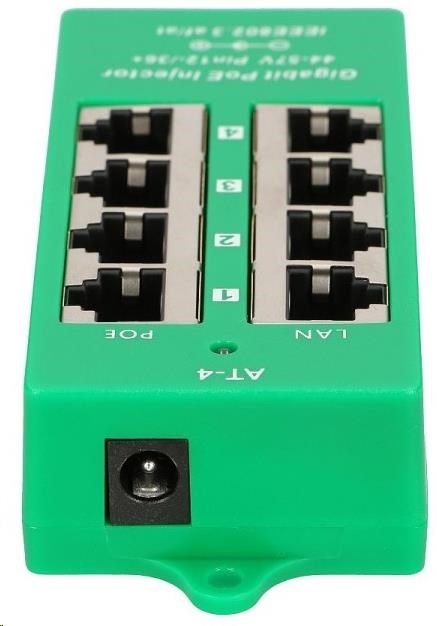 Aktívny POE injektor 4x 1Gb/s, tienený, 802.3af/at