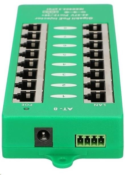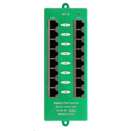 Aktívny POE injektor 8x 1Gb/s, tienený, 802.3af/at