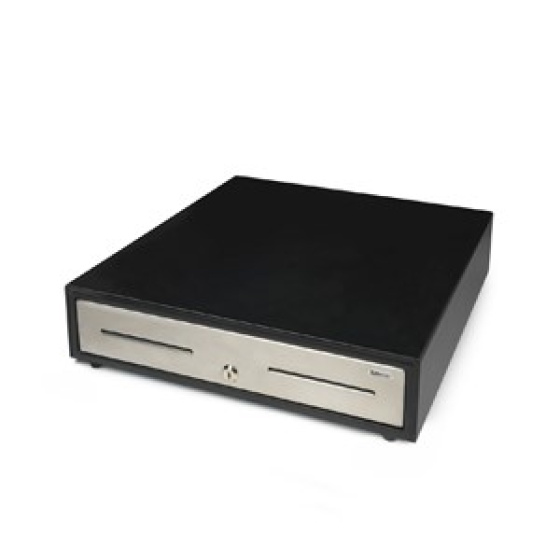 - Pokladničná zásuvka s pevnou kovovou konštrukciou na každodenné použitie - Rozmery: 46 cm (š) x 46,5 cm (d) x 11,5 cm (v) - Mimoriadne silné teleskopické drážky - Testovaná na minimálne 2 milióny otvorení - Silné kovové klipy na peniaze - Elektrické otváranie a otváranie na kľúč - Nastaviteľná a vyberateľná priehradka - 5 úložných priestorov na bankovky / 8 na mince - Obsahuje samostatnú priehradku na uloženie veľkých súm a cenných papierov mimo dohľadu. - Kompatibilný s pokladňami a pokladňami RJ12 (12V/24V) - Extra silný 3-polohový zámok (zamknutý/pohotovostný/odomknutý) - Prídavná priehradka a uzamykací kryt ako voliteľné príslušenstvo - Hmotnosť: 10,6 kg - Napájanie: 12V/24V - Súčasťou balenia sú aj 2 kľúče..