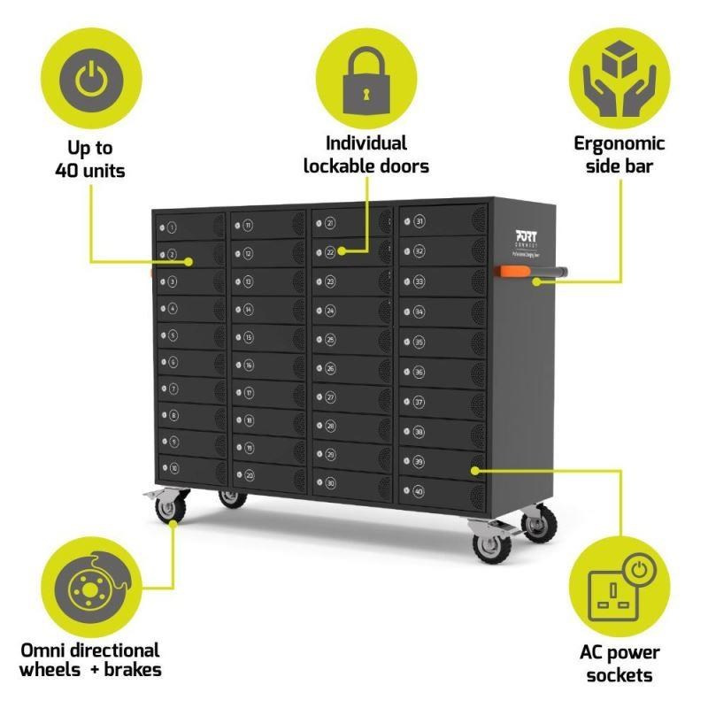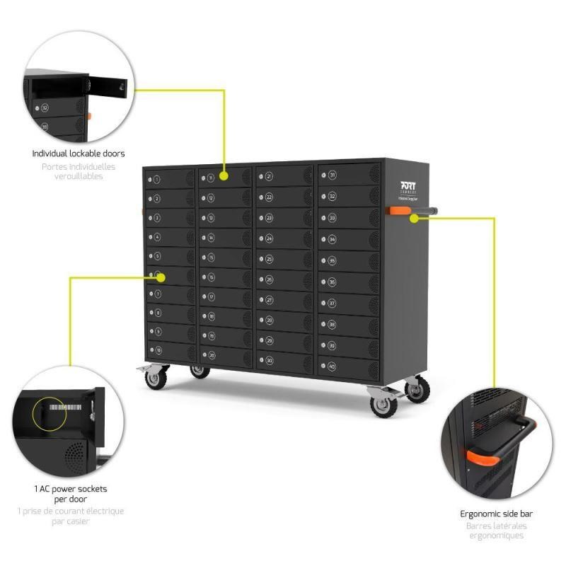 PORT nabíjecí skříňka pro 40 zařízení, individuální zámky, černá