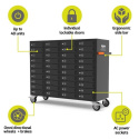 Táto skrinka dokáže nabíjať, bezpečne ukladať a spravovať až 40 tabletov, notebookov, mobilných telefónov a ďalších elektronických zariadení.