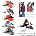 Balíček dvanástich precíznych hárkov prináša agresívny vzhľad a 6 odlišných aerodynamických tvarov, s ktorými posuniete manévrovateľnosť svojho lietadla o úroveň vyššie. Tie najvydarenejšie kúsky si po lete hrdo vystavíte na poličku vďaka priloženému dizajnovému stojanu.