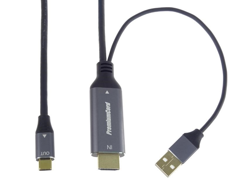 PremiumCord HDMI2.0 na USB-C kábel pre monitory so vstupným USB-C konektorom, 4K@60Hz, 1080p hliník 2m