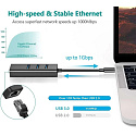 Převodník, který umožní připojit Váš počítač s portem USB typu C do internetu nebo k lokální síti pomocí kabelu s RJ45 a navíc umožňuje zapojit tři USB3.2 periferie jako USB disk, tiskárnu, klávesnici a myš