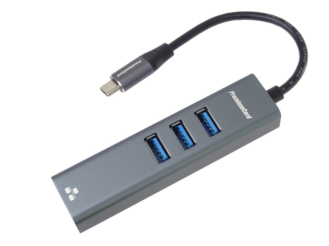 PremiumCord Adaptér USB-C na Gigabit 10/100/1000Mbps + 3x USB3.0 konektor