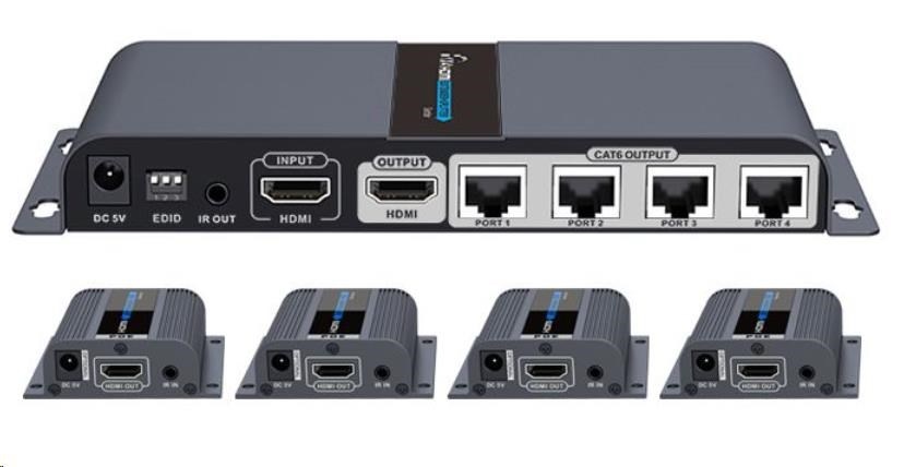 PremiumCord HDMI 1-4 splitter+extender cez CAT6/6a/7, FULL HD, 3D