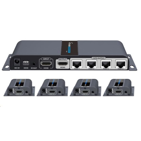 - Výstupy: 1x lokálny HDMI výstup a vysielač, 4 x HDMI výstupy (typ A) na prijímačoch