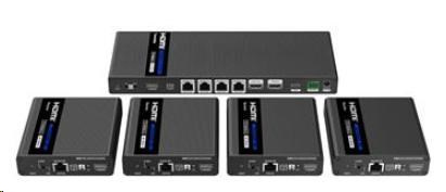 Extender sa skladá z jednej vysielacej jednotky s miestnym výstupom HDMI a štyroch prijímačov, ktorý bude k vysielaču pripojený pomocou kábla CAT6/6a/7.