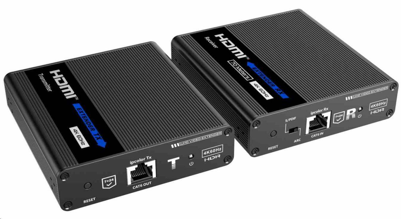 - Súprava obsahuje vysielač a prijímač, ktoré sa pripájajú pomocou vysokokvalitného kábla Cat.6 / 6A / 7