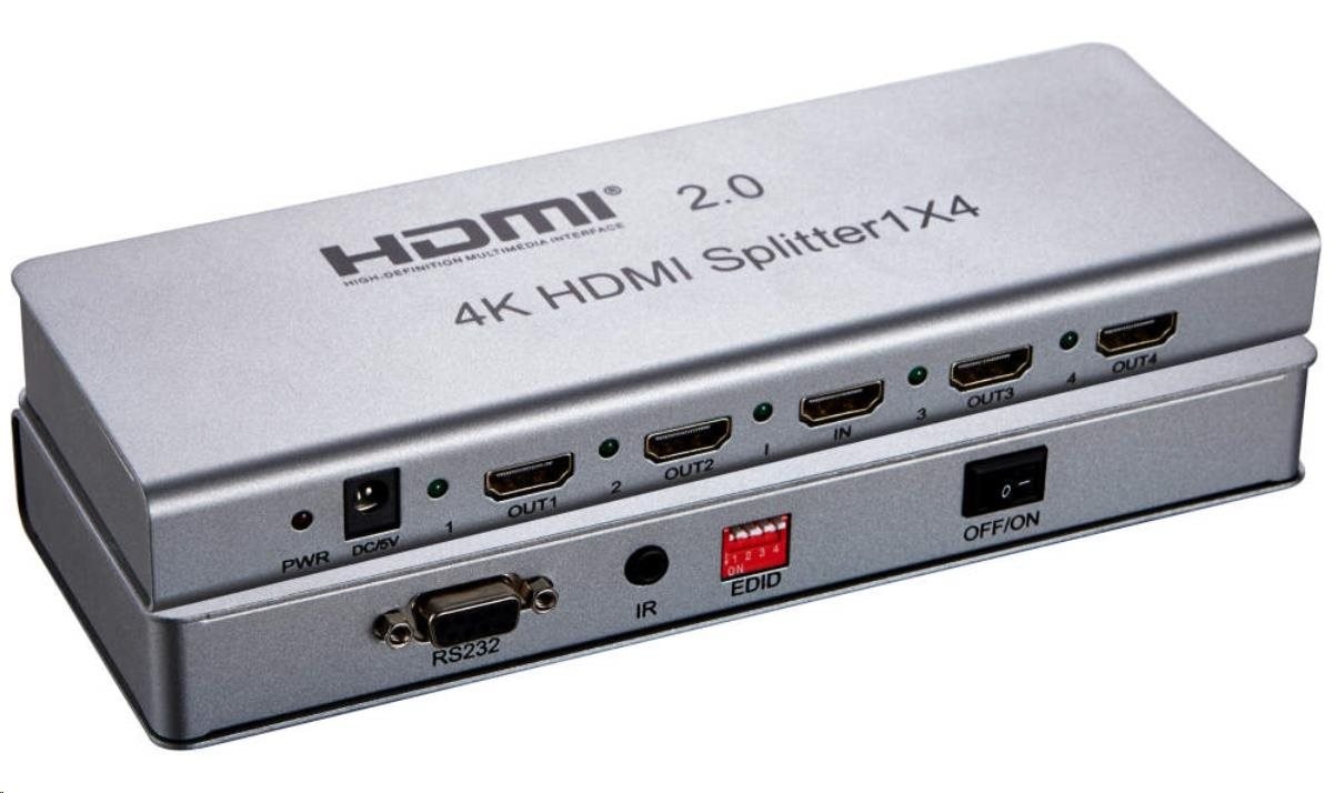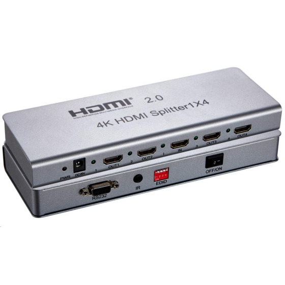 PremiumCord HDMI 2.0 rozdeľovač 1-4 porty, 4K x 2K/60Hz, FULL HD, 3D