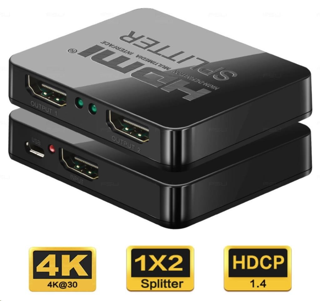 HDMI video rozdeľovač 1 => 2 porty, 3D, 4K x 2K, FULL HD s USB napájaním