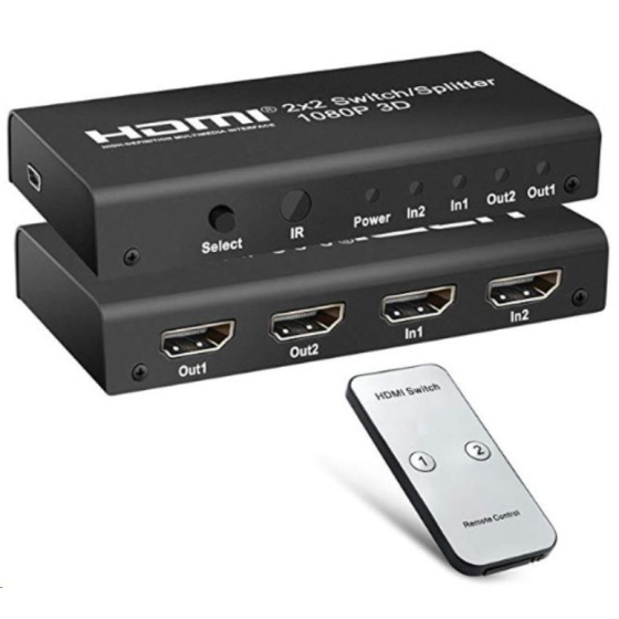 Zariadenie umožňuje vybrať jeden z dvoch vstupov HDMI a zobraziť signál na dvoch výstupoch súčasne (monitory/TV..) HDMI. Funguje ako zosilňovač signálu, rozdeľovač a prepínač.