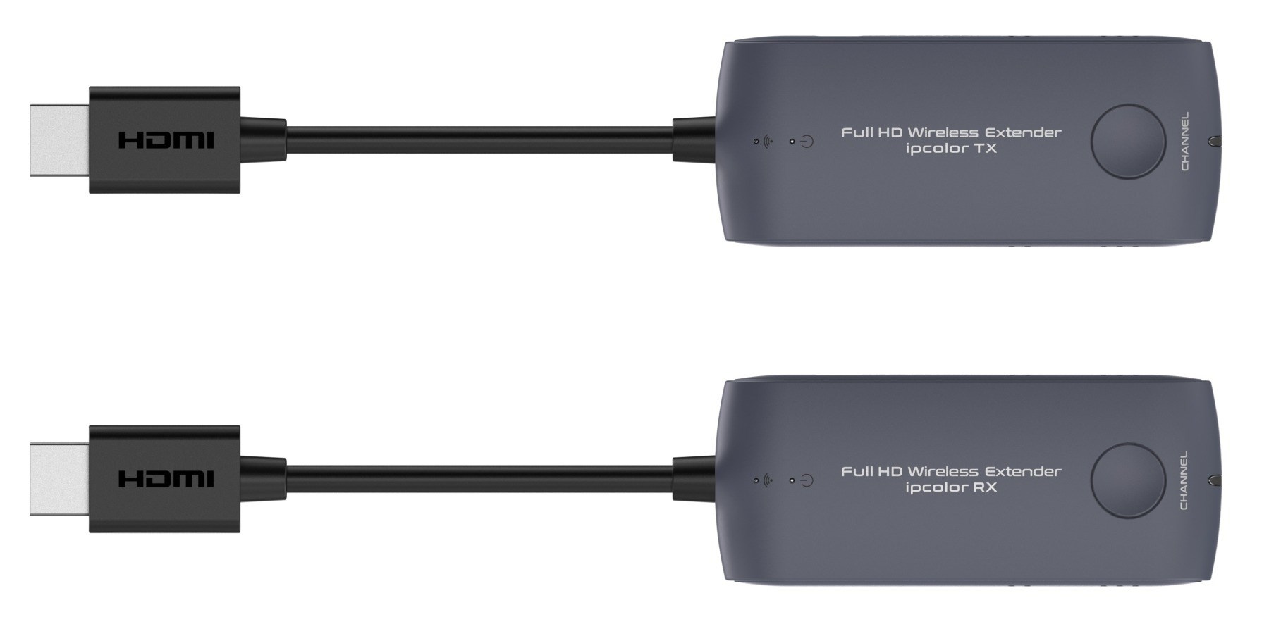 - Vysielacie a prijímacie adaptéry majú krátky HDMI kábel pre jednoduché pripojenie k počítaču a zobrazovaču alebo TV.