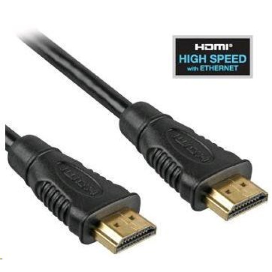 Vysokokvalitný prepojovací kábel na prepojenie dvoch audio/video zariadení prostredníctvom moderného rozhrania HDMI, ako napr. HD-DVD/BluRay prehrávač a LCD/Plazma TV. Kábel je tienený, dokáže prenášať digitálny zvuk a obraz a podporuje ochranu digitálneho obsahu HDCP. Okrem toho má kábel integrovaný vysokorýchlostný prenos Ethernetu. - Kábel sa predtým označoval ako HDMI 1.4 High Speed , podľa novej smernice sa správne označuje ako ethernetový kábel HDMI - Pozlátené konektory: HDMI typ A (19pin) samec <=>HDMI typ A (19pin) samec - Dĺžka kábla: 10 m - Rozlíšenie: do 4096 x 2160 pixelov alebo nižšie podporované formáty 1080p FULL HD/1080i/720p/720i - Podporuje : HDMI 1=>.4 a nižšie - Podporuje 4K, Deep Color, 3D, xvYCC (xvColor), automatickú synchronizáciu pier, ARC, CEC, HDCP, Dolby TrueHD, HEC - Prenosová rýchlosť 10,2 Gb/s - Šírka pásma 340 MHz - 3D video cez pripojenie HDMI - Farebná hĺbka: 24 bitov (16.7 miliónov farieb). - Trojvrstvové, vysokokvalitné tienenie - spätný zvukový kanál na prenos signálu z televízneho tunera späť do domáceho kina/surround systému - prenos počítačovej siete (Ethernet) cez kábel HDMI - 19-žilový kábel, dvojité tienenie, AWG28 - čierna farba..