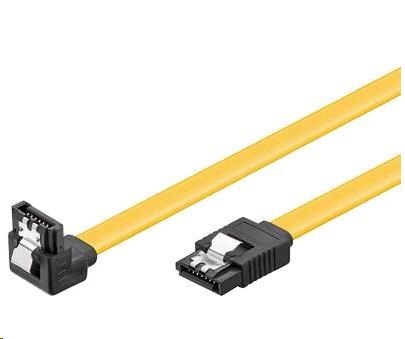 SATA 3.0 dátový kábel s kovovou západkou proti vytiahnutiu na jednej strane a jedným zahnutým konektorom