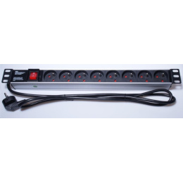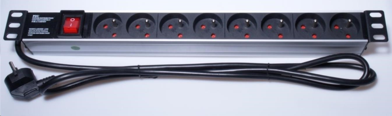 PremiumCord Panel napájací 1U do 19" racku, 8x230V, 2m kábel, vypínač - horizontálny pre montáž do 19" Racku - výška 1U - 8x 230V zásuvka - maximálny prúd: 16A - UTE zásuvky - 1.5mm2 prierez kábla - dĺžka kábla 2m - rozmery : šírka s pevnými úchytmi: 485mm, výška: 40mm, hĺbka: 44mm - strieborné hliníkové prevedenie - vypínač - pracovná teplota: 0-40°C - napájací panel obsahuje vrecko s kompletnou sadou skrutiek na inštaláciu do 19' racku
