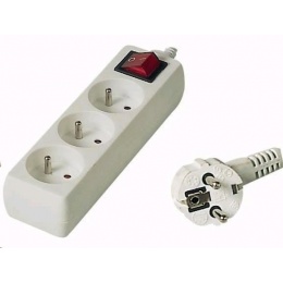 PREMIUMCORD Predlžovací kábel 230V 3m, 3 zásuvky + vypínač, biely