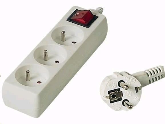 Popis PREMIUMCORD Predlžovací kábel 230V 7m, 3 zásuvky + vypínač, biely