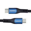 - Kábel je vybavený E-Mark čipom – riadiacou elektronikou, ktorá zabezpečuje komunikáciu pripojených zariadení. Tak je jednoduchšie dosiahnuť maximálnu možnú rýchlosť prenosu dát a nabíjania.